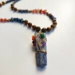 This unique, handmade necklace is designed with natural stones and chic metal details, combining modern and bohemian style. Enriched with chakra stones and natural materials, the necklace offers both aesthetic and energetic benefits.