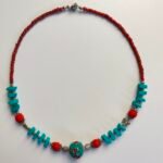 Bohemian Style Handmade Blue and Red Beaded Necklace with Silver Details