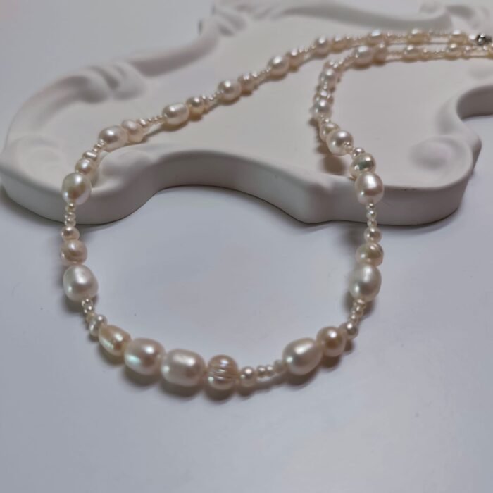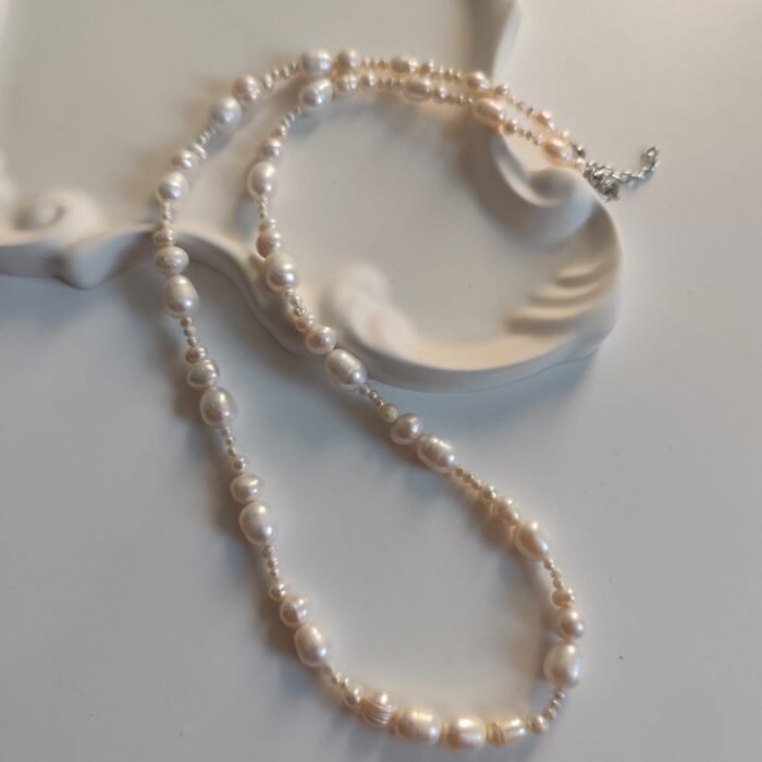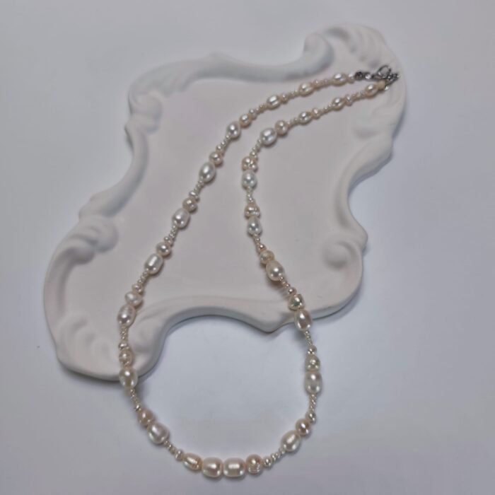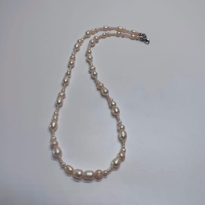 This elegant natural pearl necklace is the perfect accessory for any style, boasting elegance and grace. Pearl beads add a modern yet classic touch to the necklace. Its natural pearl design, with its sparkling, elegant appearance, captivates jewelry lovers of all ages. Ideal for both everyday wear and special occasions, this necklace complements any outfit. Pearls symbolize elegance and chic, adding a unique natural sparkle to the necklace.