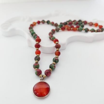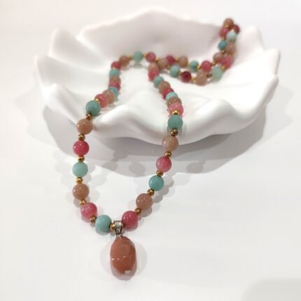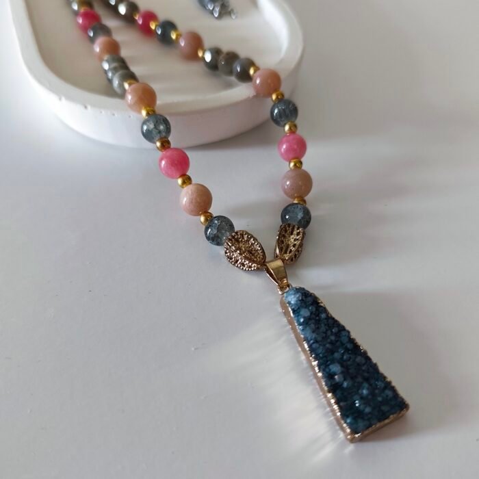 Doğal Taş Kolye: Kolyede kullanılan doğal taş enerji dengesini artırır ve şık bir dokunuş katar.